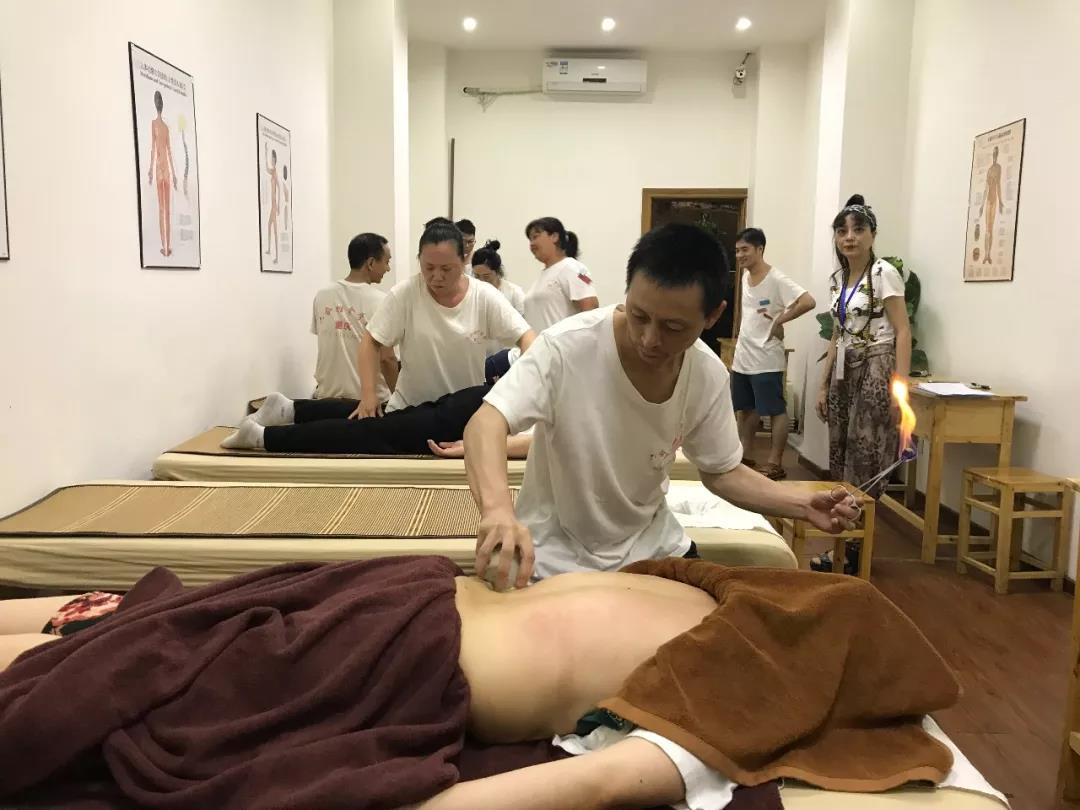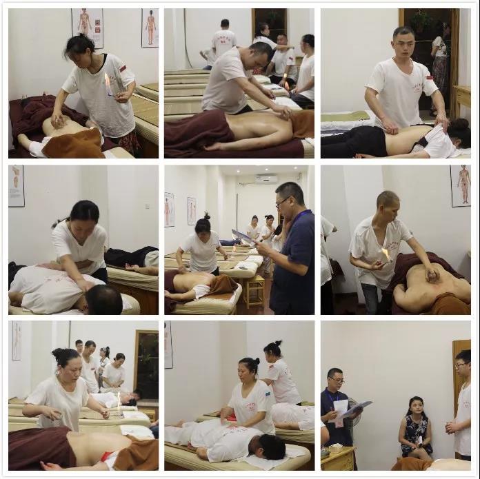 今天实操考试科目是五行能量液体疗法中唐氏点穴集散疗法和花式火罐两大项内容,看看学员们这架势!
