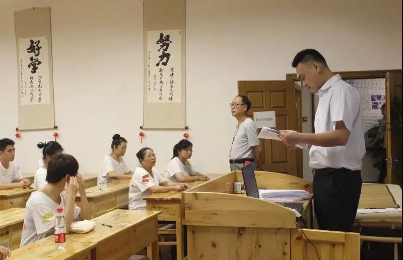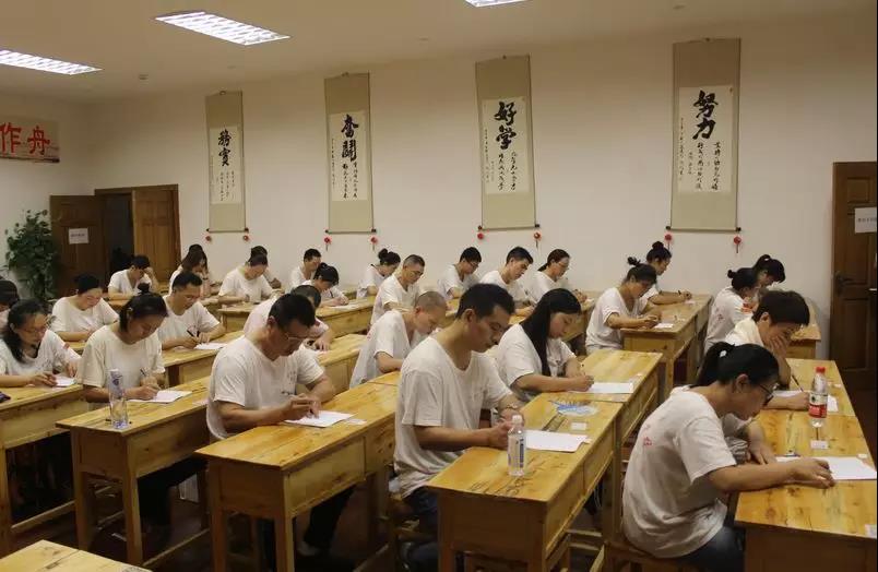 上午10时,笔试考试结束!学员们将备战实操考试,接受何林惠校长和张文建校长的考验。