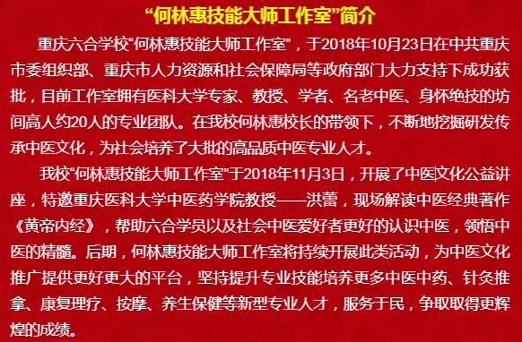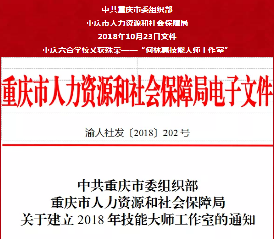 重庆六合学校又获殊荣——“何林惠技能大师工作室”