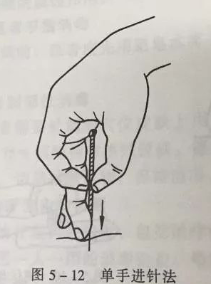 刺手与押手相互配合将针刺入穴位的方法。常用的双手进针法有4种: