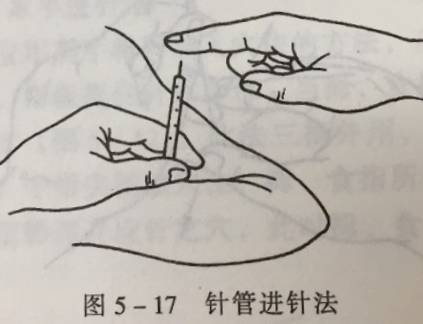 2、患者:儿童和惧针者可用管针进针法,成人一般采取其他各种进针法。老人皮肤松弛,皱纹处可采用舒张进针法。