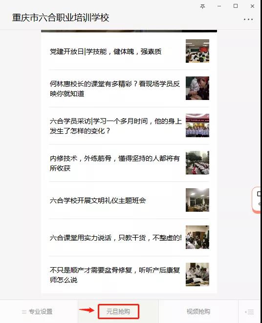 关注【重庆市六合职业培训学校】公众号,在底部导航栏找到【元旦抢购】,即可参与!