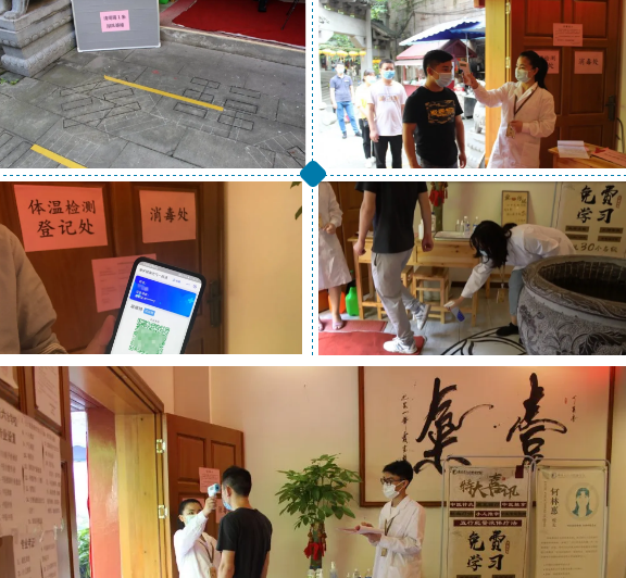 2、检测处设置于学校门口,老师学员到达进出口处,按照《疫情防控工作预案》中规定,在规定通道按一米以上间隔距离在学校门口排队接受体温检测,并出示渝康码。